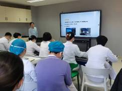 为了深入了解第一批来院7名进修护士学习情况,检验学习效果,更好地帮助其梳理学习内容,把握学习方向,做好学习规划,提升综合能力,护理部于2023年1月31日下午举办第一批进修护理骨干中期学习汇报,在护理部辛霞主任的指示下,护理部黎巧玲副主任,辛爱利老师、李晨陆老师、邵灿老师及进修护士所在科室护士长参加会议并进行现场打分,七名进修护士从个人情况介绍、学习收获、努力方向及学习困惑等四个方面进行汇报,评委现场打分。从汇报情况可以看出进修护士高度重视,做了认真思考及精心的准备,在两个多月的学习时间里收获了知识、技能的同时也收获了友谊及感动,深刻体会到了交大一附院护理队伍充满正能量且有温度的良好氛围,从学习工作当中感受到自己的不足和差距。汇报结束后护理部黎巧玲副主任进行了点评,提出来几点建议,要求各位学员在下一阶段的学习中要理清思路、主动学习,积极思考,勤于请教,在有限的时间内要抓紧要任务,在新业务、新技术护理方面下功夫学习,在护理管理方面深入思考专研,定期进行学习总结,借他山之石,不断提升个人综合能力。