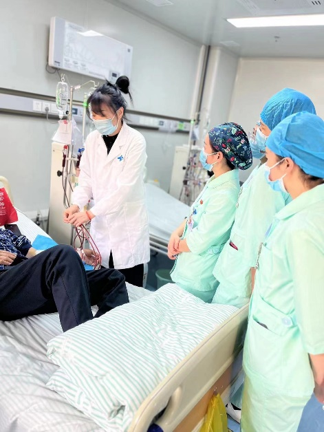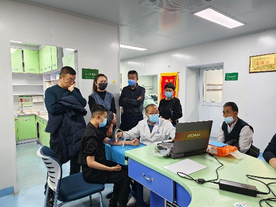 团队成员参观了河西学院附属张掖人民医院血液净化中心,并与陈瑞丰主任及当地医护人员进行了深入交流和探讨,包括血液透析患者血管通路的建立与维护、慢性肾脏病并发症的诊治等。在交流过程中,针对一些血管条件差且高龄的患者,史珂慧医师经过仔细评估后制定了手术方案,并为患者成功建立了自体动静脉内瘘;针对以动静脉内瘘作为长期血管通路的患者,严森辉医师进行了详细的B超检查,并为患者提出了后续的随访及治疗建议;王瑜护士就超声随访结果结合患者内瘘情况制定了个体化穿刺方案,并带领护理组床旁查房。