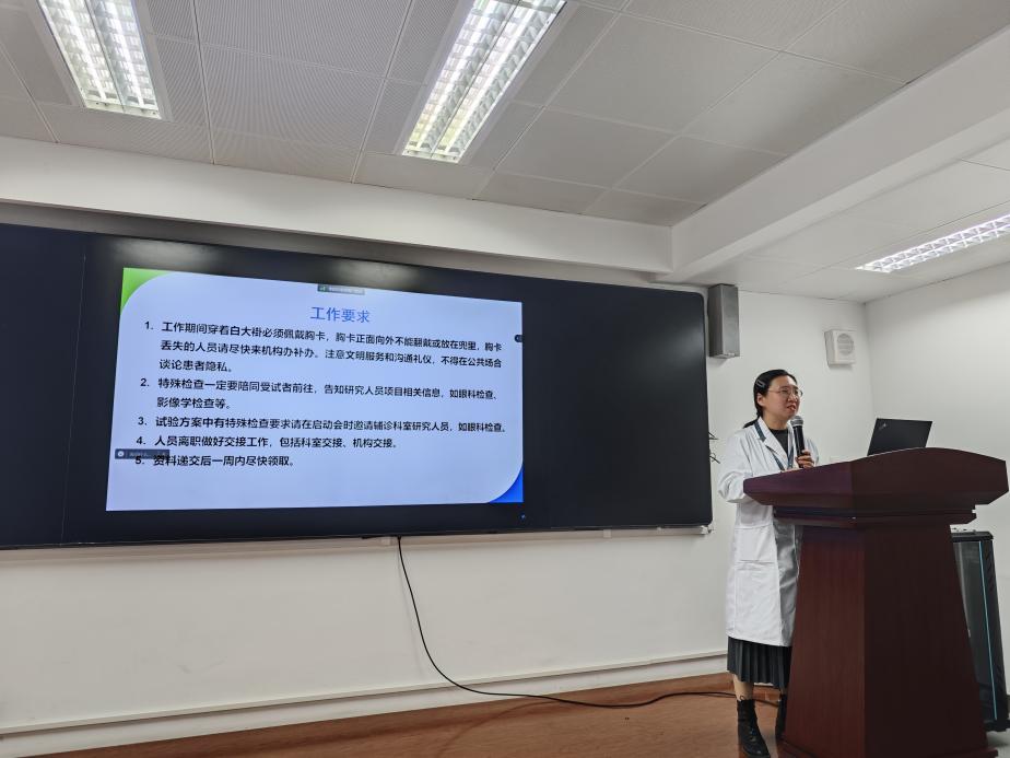 最后,刘妤介绍了我院CRC管理的工作要求、管理措施、2024年CRC管理和培训计划。对全体CRC提出具体工作要求,首先要服从医院的各项管理要求,同时要在严格遵守GCP规范的基础上开展各项工作,希望大家能在工作中不断提升业务能力和职业素养,做好研究者的助手。