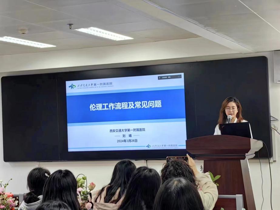 随后,是关于我院伦理审查流程的介绍。伦理办公室刘曦介绍了伦理初始审查、跟踪审查、安全性审查等相关内容,对伦理审查流程进行了梳理与解释。