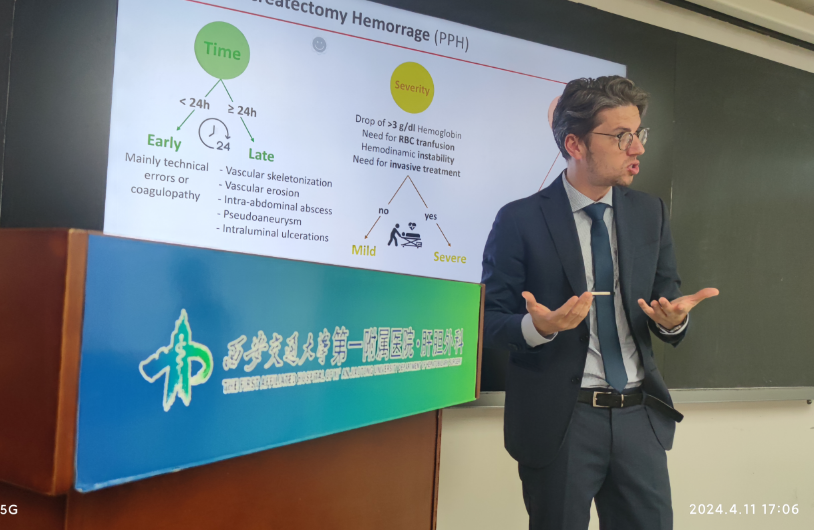2024年4月11日至13日,国际胰腺外科研究组(ISGPS)秘书、意大利帕多瓦大学Giovanni Marchegiani教授受邀访问西安交通大学胰腺疾病诊疗中心,开展学术报告和交流活动,观摩我院胰腺手术演示,并洽谈国际合作事宜。