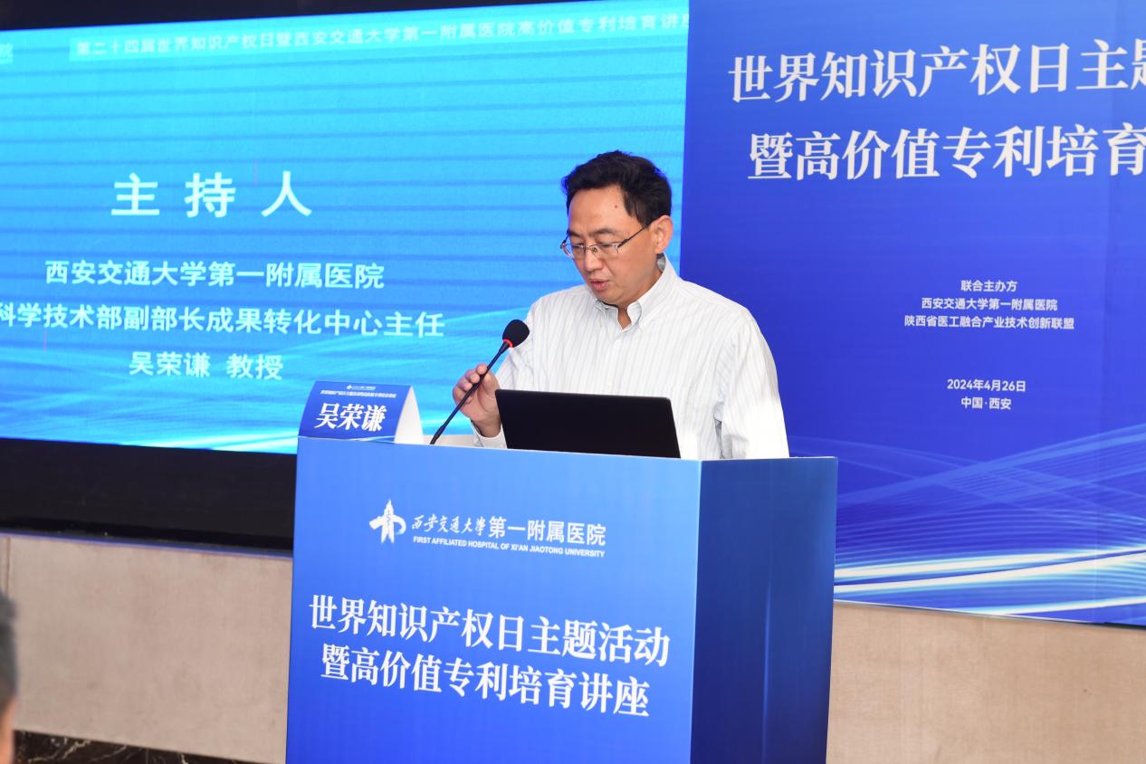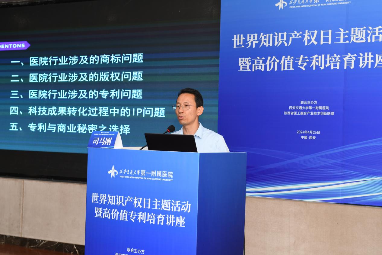 为完善医院的知识产权管理体系,加强知识产权人才队伍建设,营造良好的知识产权创造、保护、运用氛围,鼓励积极开展科学研究,不断提高原创创新能力,产出更多高水平、高质量的科技成果,2024年4月26日,在第24个世界知识产权日之际,西安交通大学第一附属医院、陕西省医工融合产业技术创新联盟联合举办“世界知识产权日主题活动暨高价值专利培育讲座”的活动,以线上线下相结合的形式顺利召开,我院榆林院区、青海院区线上参加。