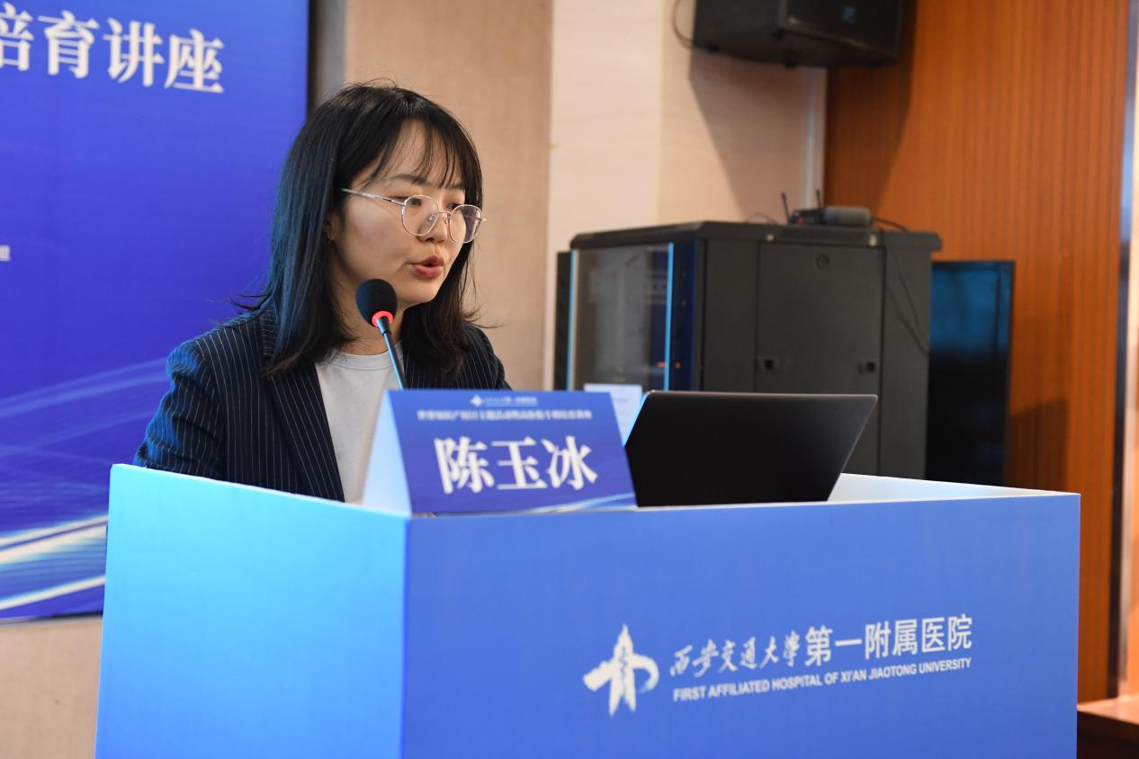 随后,进入讲座报告环节。陕西省知识产权保护中心张思柔预审专员以《陕西省知识产权保护中心专利快速预审政策解读》为题,简要介绍了陕西省知识产权中心,并从具体流程、申请主体、条件和材料等方面对《专利预审备案管理规范》及《专利快速预审业务规范》进行详细且深入地解读,为医院后续专利申请工作带来指导意见。