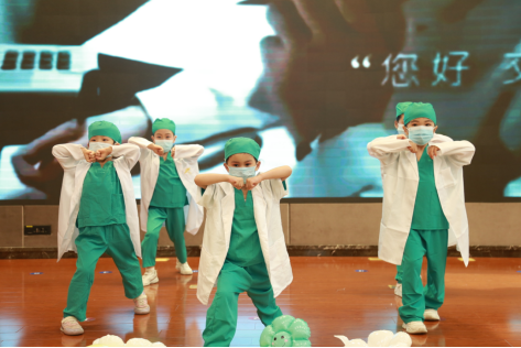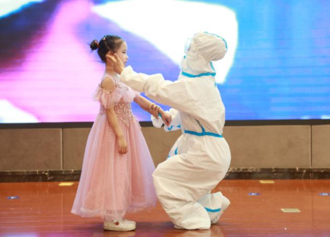一支舞蹈《致敬最美逆行者》表达对白衣天使的感谢,让台上的小朋友和观众席家长们情感共鸣,深深沉浸于抗疫情境中……