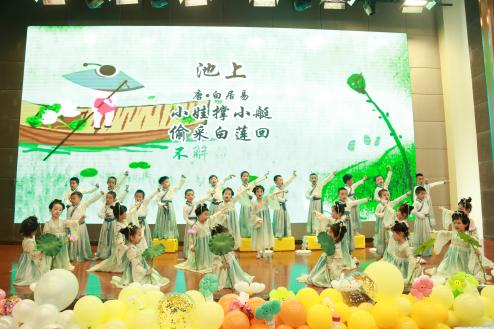 源远流长的古典诗文,筑就了经久不衰的民族瑰宝。小朋友们表演《诗词山河》《诗韵四季》,走进诗词世界,追寻民族的优秀文化基因,拥抱最美的诗和远方,稚嫩的声音沁人心脾,真是才华横溢!