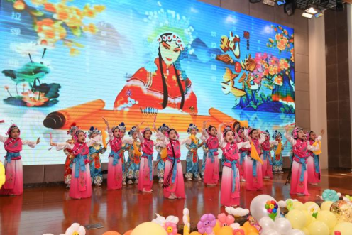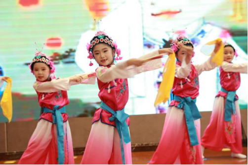戏曲被誉为中国最为古老、最为深厚、也是最有人文底蕴的一种艺术形式,它是中华民族艺术的精髓之一,更是中华文化的瑰宝。一支舞蹈《小小京剧娃》,拉开了文艺演出的序幕。