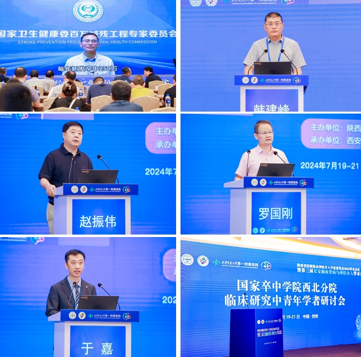 7月19日围绕着中青年学者临床研究、脑心同治、OCIN young、出血分场和经桡神经介入培训等多个热点话题拉开了本次会议的序幕,当晚陕西省医师协会神经介入专委会第二届委员会召开并顺利换届,韩建峰教授当选为新一届主任委员。7月20日的开幕式主论坛,西安交通大学第一附属医院神经内科副主任于嘉教授担任主持,中国工程院院士吉训明教授、西安交通大学第一附属医院副院长韩建峰教授、陕西省医师协会神经介入专委会名誉主委赵振伟教授以及西安交通大学第一附属医院神经内科主任罗国刚教授分别致辞,对远道而来的专家学者表示热烈欢迎,对本次论坛的举办寄予殷切期望,希望通过此次盛会推动脑血管病与神经介入领域的深入合作与交流,并预祝大会圆满成功!在主论坛讲座上,中国工程院院士吉训明教授、首都医科大学附属天坛医院缪中荣教授、首都医科大学附属宣武医院张鸿祺教授、上海复旦大学附属华山医院顾宇翔教授、首都医科大学附属天坛医院刘丽萍教授、陆军军医大学附属西南医院陈康宁教授、上海交通大学附属仁济医院万杰清教授、南方医科大学附属珠江医院段传志教授以及西安交通大学第一附属医院韩建峰教授分别带来了精彩的学术报告。随后,7月20日至21日围绕出血专场、出血+缺血专场、取栓专场及卒中健康管理论坛暨脑心健康管理师培训班等内容,各个领域的专家展开了全方位的主题授课和专项培训,为参会者提供了立体化、多角度的学习交流机会,获得了全部嘉宾以及学员的一致好评!