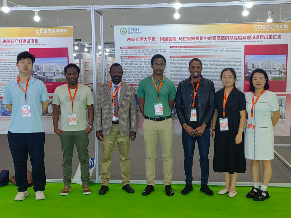 2024年8月9日,在陕西省人才服务与外事交流中心干部杨利带领下,由我院医学影像科张硕、超声医学科柯密以及我院来自非洲马拉维姆祖祖中心医院放射科的四位进修医生Brave Kadoko Nyirenda、Patrick Manda、Benjamin Nyirenda和Chimwemwe Nanguwo组成的代表团,赴北京参加2024北京健康大会暨中非医院发展研讨会。该会议由国家卫健委国际交流与合作中心主办,旨在进一步深化中非对口医院机制建设,实现“从发展援助到发展合作”的新目标。