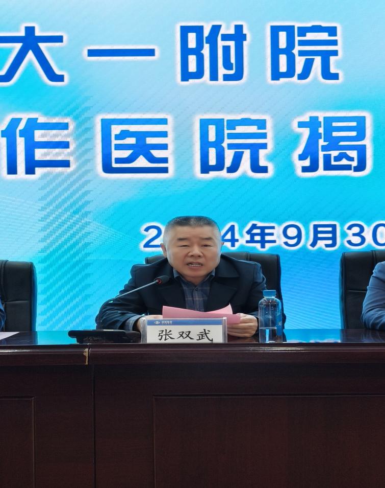 我院副院长韩苏夏介绍了医院的整体情况和科研、教学方面所取得的成绩。并指出,我院作为国家卫健委主管的44家医院之一,作为首批国家医学中心(辅导类)创建单位,有责任和义务落实好国家政策,让优质医疗资源下沉至基层医院,始终不渝的做到听党话、跟党走,全面落实好国家赋予的责任,相信在和酒钢医院协作的过程中,一定会肩负使命,担好责任,进一步深化合作,促进临床工作与科研合作深度融合。并表示我院与酒钢医院协作医院揭牌,标志双方合作新篇章。双方将共享资源,优势互补,提升医疗服务,要紧紧围绕“基层首诊、双向转诊、急慢分治、上下联动”的制度框架,完善分级诊疗制度体系。同时也感谢酒钢医院及嘉峪关市卫生健康委支持,助双方学科共建、技术交流。我院将发挥科研、医疗、教学优势,深化合作,提供优质服务。