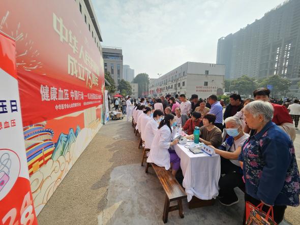 随着国庆长假的结束,我们迎来了第27个全国高血压日。上午10点,心血管病院袁祖贻院长携牟建军教授、白玲教授、郑小璞教授等20余名医护人员在医院门诊大楼前开展了高血压大型义诊活动。今年的主题为“健康体重,理想血压”,旨在进一步强化公众对高血压防控工作的认识与重视,积极倡导并践行健康生活方式,携手共建坚实的健康防线。