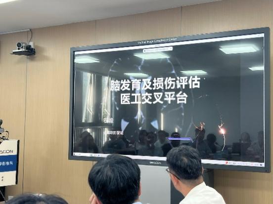石峰博士介绍了脑发育及损伤评估医工交叉平台,强调了跨学科合作在推动医学影像科研发展中的重要性,并阐述了人工智能技术在提升诊疗精准度和效率方面的巨大潜力。宋潇鹏博士以“儿童脑成像技术开发与生态建设”为主题进行了精彩分享,展示了技术进步对脑发育等相关科研工作的重要推动作用。