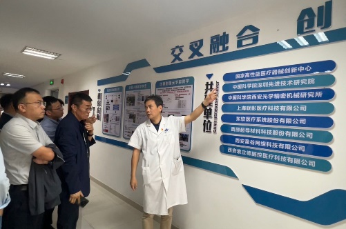 在杨健教授和张明教授的带领下,参会的专家学者们参观了医学影像科以及陕西省计算影像与医疗智能工程技术中心。两位教授详细介绍了低剂量CT创新技术与应用团队、脑发育与脑损伤MRI研究团队、脑科学与影像新技术创新团队的各项研究内容及创新成果,展示了先进计算成像技术、计算人体数字孪生、计算影像元宇宙教学等各项前沿成果,体现了科室在推动科技创新和教学革新方面的卓越实力与风采。