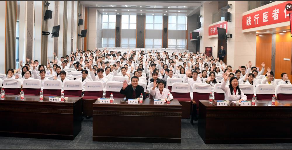 活动开始前,全体学生统一身着白大褂,齐声喊出“新阶段,新挑战,向着梦想启航!”这一响亮而充满激情的口号不仅表达了他们对未来研究生生涯的美好憧憬,也展现了作为新一代医学生勇往直前的决心和勇气。