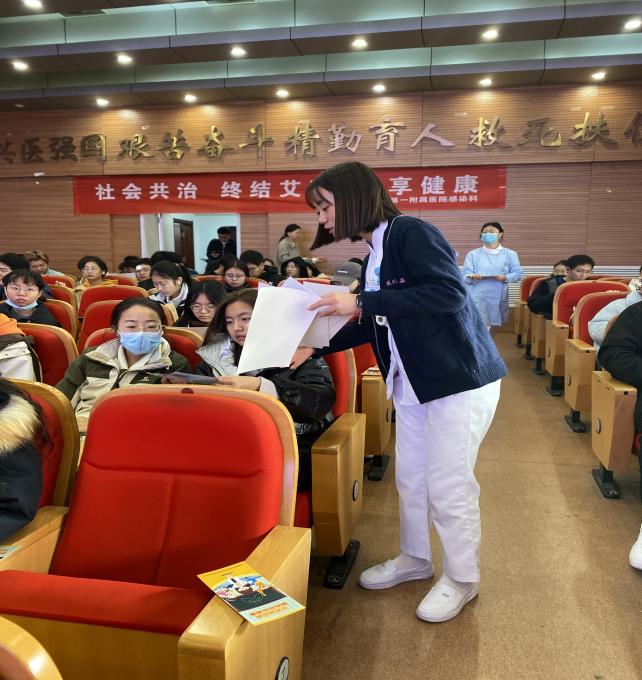 感染科路德艳副主任护理师通过对学生进行正确的性教育,让学生进一步的认识艾滋病,了解到艾滋病的危害,帮助学生建立良好的健康行为,树立正确的人生观,加强对自身保护的意识与能力。