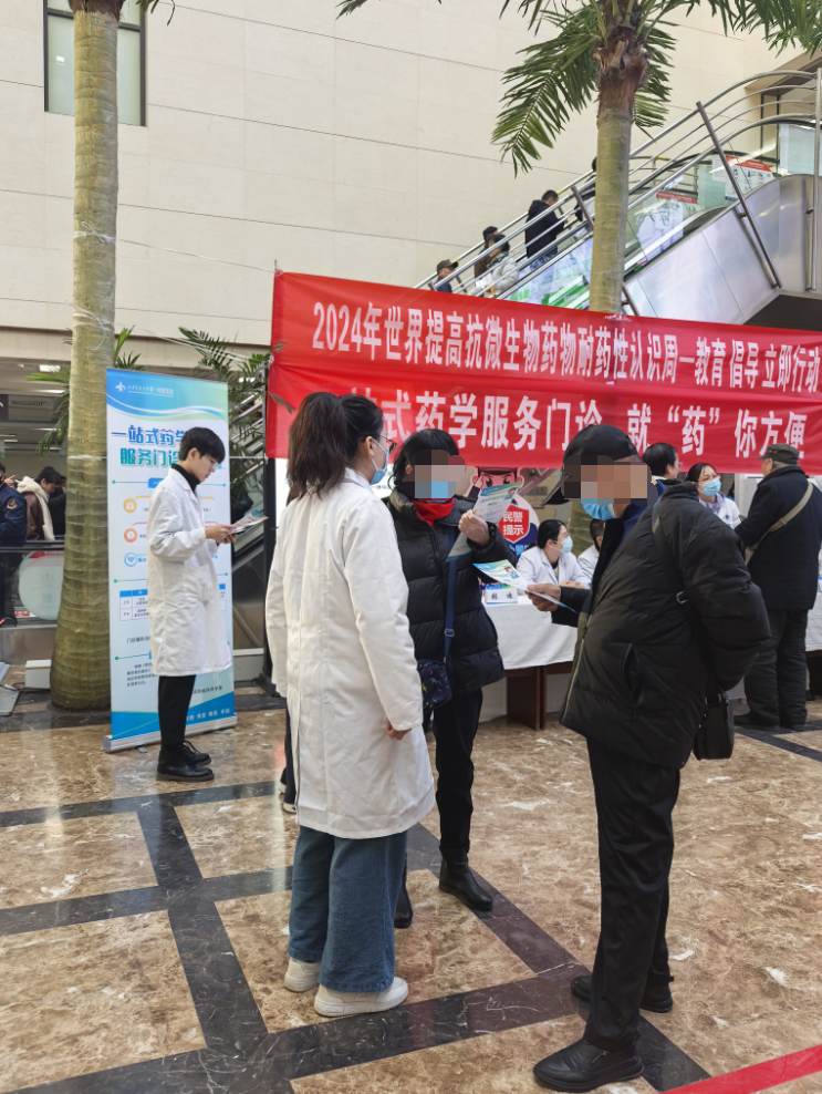 29日上午,在医务部和药学部的精心策划和组织下,我们医务人员在门诊楼南广场举行了“2024世界提高抗微生物药物认识周”的宣传和临床药师义诊活动。本次活动由药学部董海燕副主任和医务部员辉带领临床药师为前来就诊的老百姓进行了药学门诊义诊及抗菌药物耐药性相关知识的宣传活动。