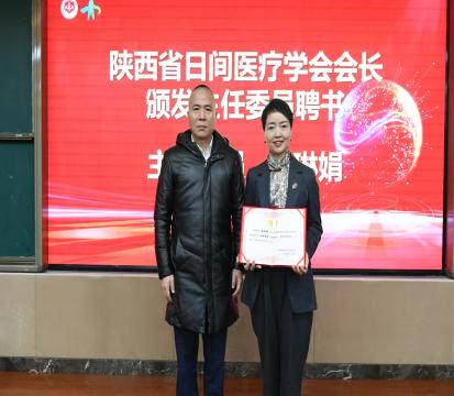 陕西省日间医疗学会刘小南会长为分会主任委员颁发证书,张琳娟主任为副主任委员颁发聘书。