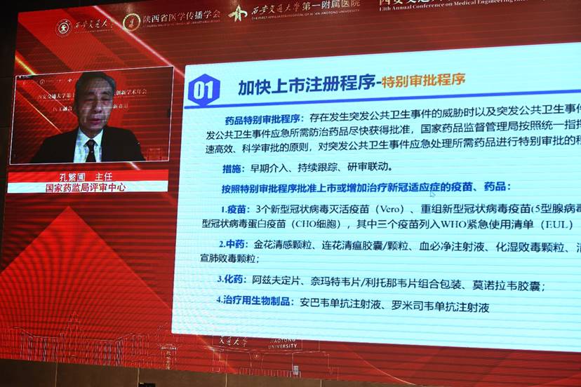 在主旨报告环节,清华大学附属北京清华长庚医院院长董家鸿院士、西安交通大学吕毅副校长、国家药监局评审中心孔繁圃主任、西安交通大学郑南宁院士分别发表了题为《区域智慧健康医疗体系》《2022西交大医工交叉科技创新实践》《药品注册政策解读》《人工智能面临的挑战及其在医疗健康领域的应用》的主旨报告。