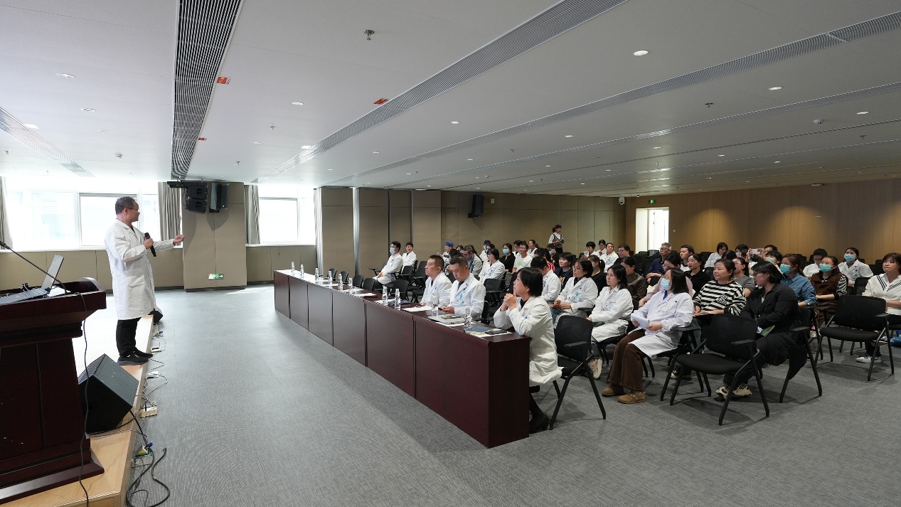 会议伊始,陆港院区副院长、综合管理办公室主任李红霞表示,学科细分持续深入,医疗服务逐渐精细,疑难病例诊治是国家医学中心建设的必要要求,多学科讨论是提升医疗质量的重要一环,更是现代化、国际化医院高质量的医疗服务体系的具体实践。院区自正式开诊以来,不断探索构建高水平诊疗体系,通过建立多学科协作机制,重点推进三类诊疗实践:针对在院复杂病例开展实时多学科会诊,确保精准施治;系统回溯典型疑难病例诊疗流程,实现多重提升;搭建新技术新疗法交流平台,促进学科交叉融合。她强调,此次研讨不仅能为患者提供更精准的服务,更是培养青年医生临床思维的重要载体,通过“机制+技术”模式开展的多维度案例分析帮助医疗团队形成系统化、规范化的诊断路径,为医院高质量发展夯实人才基础,同步提升区域内整体医疗水平,促进优质医疗资源的扩容下沉。