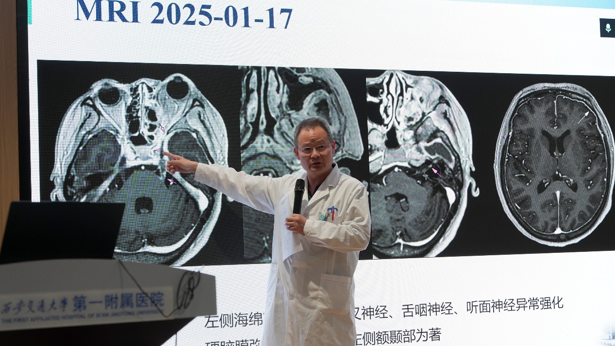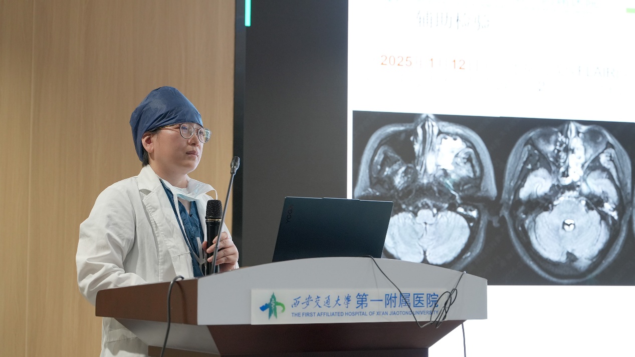 为深入贯彻落实国家卫健委关于推动公立医院高质量发展的工作部署,持续提升陆港院区学科建设水平与医疗服务质量,不断深化与协作医院的合作交流,陆港院区综合管理办公室锚定院区发展目标,聚焦院区发展关键,以典型疑难病例讨论为抓手,以学科内涵建设为引擎,扎实推进医疗质量攻坚行动,精准赋能院区高质量发展。3月26日下午,一场别开生面的疑难病例研讨会以“线上+线下”和“院内+院外”的双轨制模式精彩展开,来自神经内科、耳鼻咽喉头颈外科、医学影像科、神经外科、眼科、药学部、感染科共30个临床医技科室的临床医师、规培生、进修生和浐灞国际港区域的新筑社区医院、新合社区医院及周边协作医院等100余人参会,会议由神经内科主任罗国刚主持。