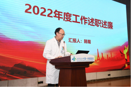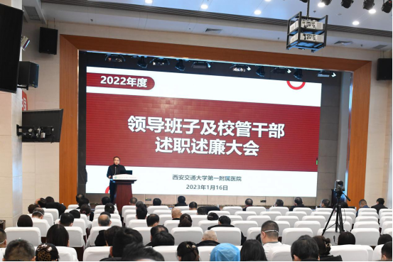 1月16日下午,我院召开2022年度校管干部述职述廉暨年终总结表彰大会。西安交通大学副校长、医学部主任、一附院院长吕毅、医学部常务副主任雷利利、医学部副主任兼综合办主任贺长中出席会议。院领导班子成员、院长助理、两委委员、各科室主任、副主任、党总支(支部)书记、总护士长、教代会、民主党派、离退休人员及党员代表参加会议。会议由院党委书记马辛格主持。