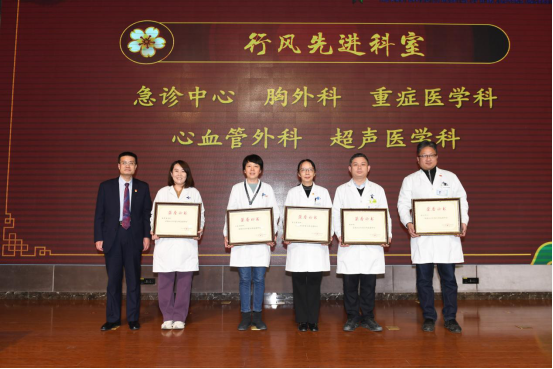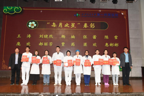 冯广林副书记宣读了《关于对2022年度考核优秀的科室和个人予以表彰奖励的决定》。大会对过去一年中业绩突出、表现优异的科室和个人予以表彰和奖励,同时对“每月之星”疫情应对先进集体及个人进行表彰,与会领导为获奖人员进行了颁奖。