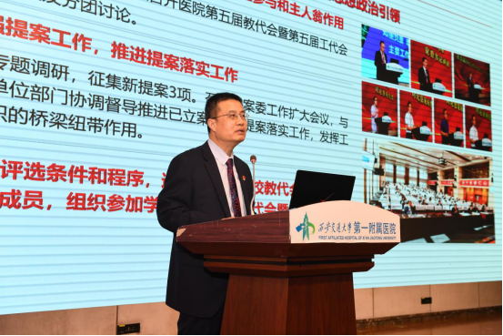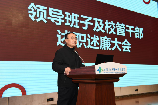 吕毅副校长在总结中讲到,在本次校管干部述职述廉大会上,我们欣喜地看到,医院各项工作都在稳步前进,党委领导下的院长负责制进一步深入规范落实。2023年是全面贯彻落实党的二十大精神的开局之年,是学校推进实施“十四五”规划、“双一流”建设的关键之年,也是一附院推进国家医学中心落地的关键之年。他说到,国家医学中心建设不是口号,是凝结所有一附院人的聪明才智,团结一致,攻坚克难的结果。未来,希望在一附院领导班子的带领下,大家心往一处想、劲往一处使,全力推动国家医学中心建设早日落地,推动医院各项事业高质量发展。