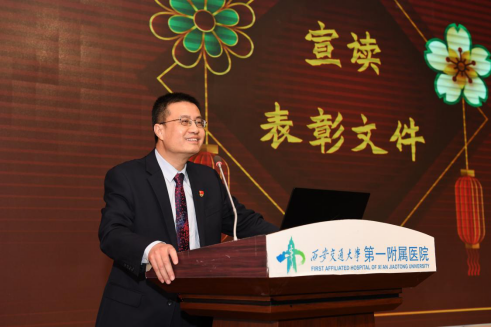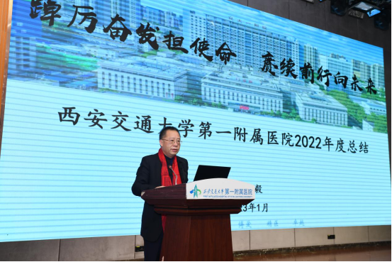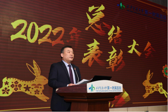 大会最后,吕毅副校长代表西安交通大学为受表彰的先进集体和个人表示热烈祝贺,同时也向所有立足岗位、埋头苦干、敬业奉献的一附院教职员工表达深切的敬意,他表示,成绩的取得靠的是坚定的理想信念和持之以恒的决心,希望大家能继续谋划好来年的重点工作,为国家医学中心建设添薪续力。