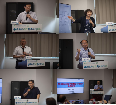 下半场由王瑾教授和张萌博士主持。荆江鹏博士带来了功能性神经疾病的神经调控治疗,DBS、磁波刀、经颅磁刺激等众多神经调控方法目前应用于多种神经疾病;曹红梅教授从理论、前沿文献的角度讲解了帕金森病早期诊断的困境,提出了多种生物标志物联合用于早期PD诊断的新趋势和意义;邓永宁博士引用了大量临床研究和图片,生动讲解了帕金森病肉毒毒素治疗的方法;王瑾教授详细讲解了帕金森病患者容易合并痴呆及帕金森病痴呆的早期识别和管理;张萌博士从临床病例出发,详细讲了帕金森病急症的发生机制、诊断标准及早期识别重要性和治疗方法;刘坤成博士将帕金森病评估量表分类为疾病严重程度、运动症状评估、非运动症状评估、多种非运动症状评估、并发症评估等多个方面,及量表评分的临床意义;郭志芬护师将帕金森病步态评估及理论及实际操作进行现场讲解和演示。最后,卫萌博士进行疑难病例展示,由屈秋民教授、刘艺鸣教授、谢安木教授、刘学东教授、曹红梅教授进行现场查体及病例讨论。学员学习热情高涨,会场学习氛围浓厚。