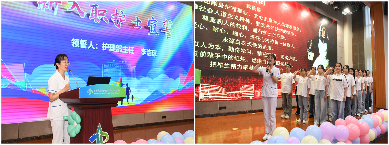 李洁琼主任向新员工寄语,希望大家在导师和科室助力下尽快走出入职迷茫,迈向自我突破的成长阶段,实现人生目标。大家要以榜样为动力,践行护士誓言,在2025年做好职业规划,在未来五到十年遇见更优秀的自己。这里是孕育希望的沃土,将助力新人成长。同时,感谢全体同事携手共进,成就更好的彼此。随后,李洁琼主任带领大家庄严宣誓,全体新护士许下誓言,誓言铿锵有力、久久回荡。这誓言彰显责任、铭记初心、致敬护理职业精神,让每位新人的职业使命感得到升华。