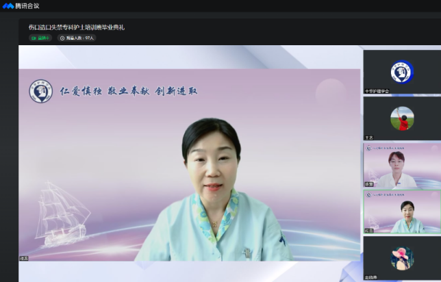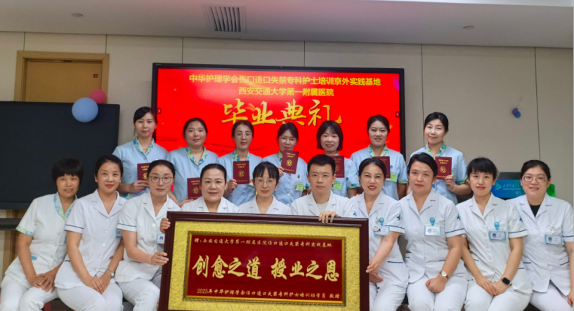 中华护理学会典礼结束,我院护理部专门为来自:陕西、河南、宁夏的7位毕业学员举行的简单而又隆重的毕业典礼。首先由王惠君副护士长汇报了本年度的临床执行情况,学员们经过一个月的理论学习,两个月的临床实践学习,通过理论、操作、及个案考试的考核评比,顺利完成学习。学员们在我院普通外科、肿瘤外科、泌尿外科、烧伤整形科等科室系统学习了伤口、造口、失禁技术的临床实践,参与了健康教育活等动, 完成了造口定位、术后护理、并发症处理、造口手术观摩等实操训练,完成了伤口换药拆线、超声清创、间歇性导尿等关键技术。此外,通过参与多学科会诊和“互联网+上门服务”等创新实践,全面提升了专科护理能力,进一步拓宽了临床视野。期间,在中华护理学会专家的督导检查中,基地教学满意度达到100%,专家也对基地从多维度给予的肯定,充分体现了培训的规范性与专业性。