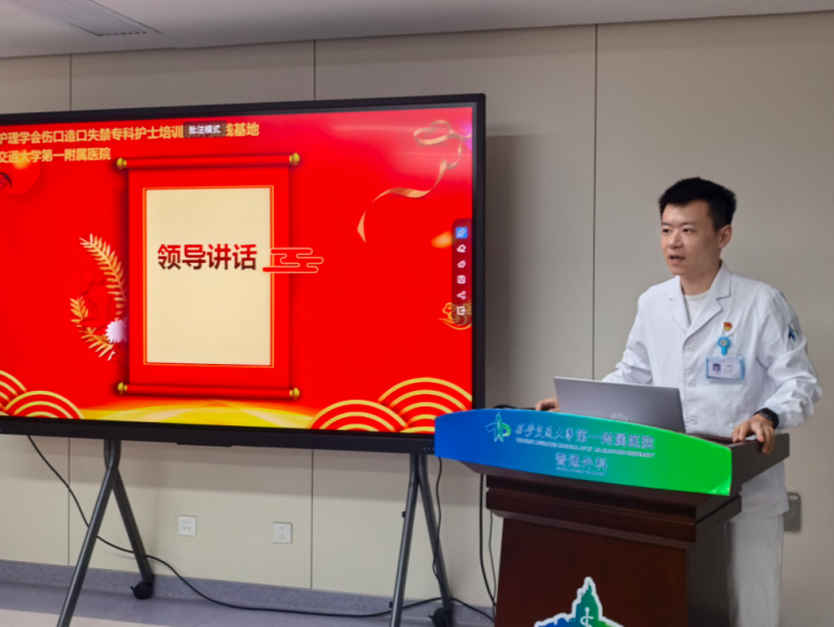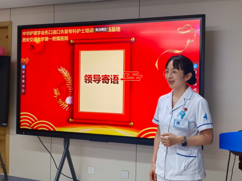 接下来,护理部李晨陆副主任作为我院分管中华专科护士培训京外实践的负责人在讲话中表示:伤口造口失禁专科护理是临床护理的重要组成部分,专科护士的培养不仅提升了护理质量,更体现了护理专业的精细化发展。希望各位学员以此次培训为起点,将所学知识应用于临床,推动专科护理事业的高质量发展。