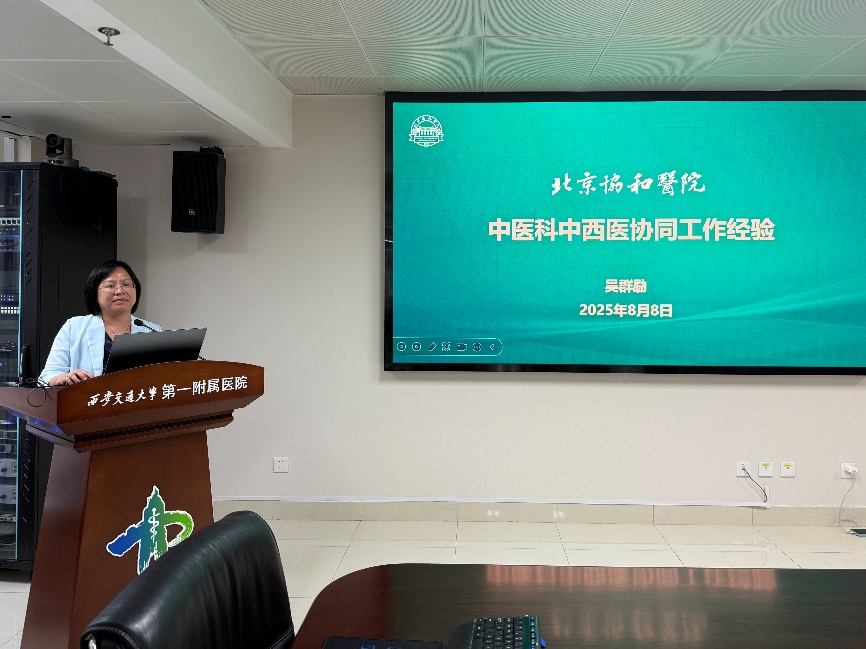 随后,青年岐黄学者吴群励教授分享了该院在中西医协同工作中的先进经验。她详细介绍了北京协和医院在机制建设、人才培养、临床路径优化等方面的具体举措与显著成效,为我院深化中西医结合实践提供了重要参考。