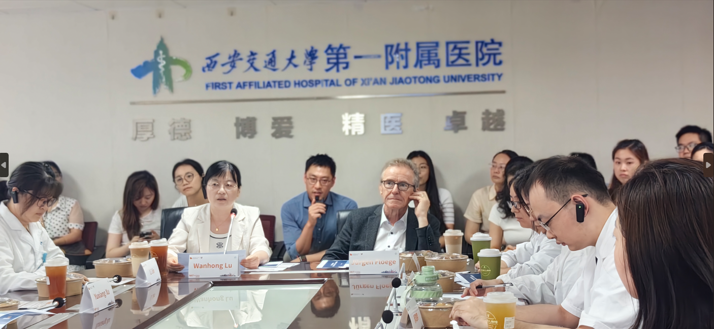 2025年8月18日下午,由路万虹教授担任大会主席的肾脏病学术会议在西安交通大学第一附属医院科教楼808会议室圆满落幕。本次会议邀请国际著名肾脏病学专家Jürgen Floege教授参访,以及省内同行专家参会讨论。德国Jürgen Floege教授是国际著名的肾脏病学专家,在肾脏病诊疗领域具有重要贡献。他多次牵头并以第一作者发表全球肾脏病KDIGO诊治指南,是德国肾脏病学会创始成员及副主席,同时 担任“Clinical Kidney Journal”杂志主编,以及JASN、KI、Journal of Nephrology、Clinical Nephrology等多个高水平肾脏病杂志副主编。此次Jürgen Floege教授的到访不仅给我们提供了宝贵的学习机会,更是推动我院肾内科在慢性肾脏病领域诊疗水平跃升、促进多学科协作、提升科研能力、扩大区域影响力的重要契机,最终将为广大慢性肾脏病患者带来更优质的医疗服务和更好的健康福祉。
