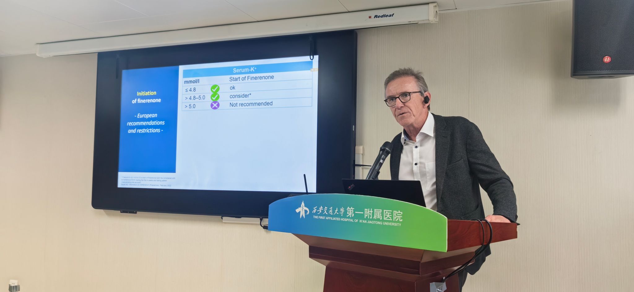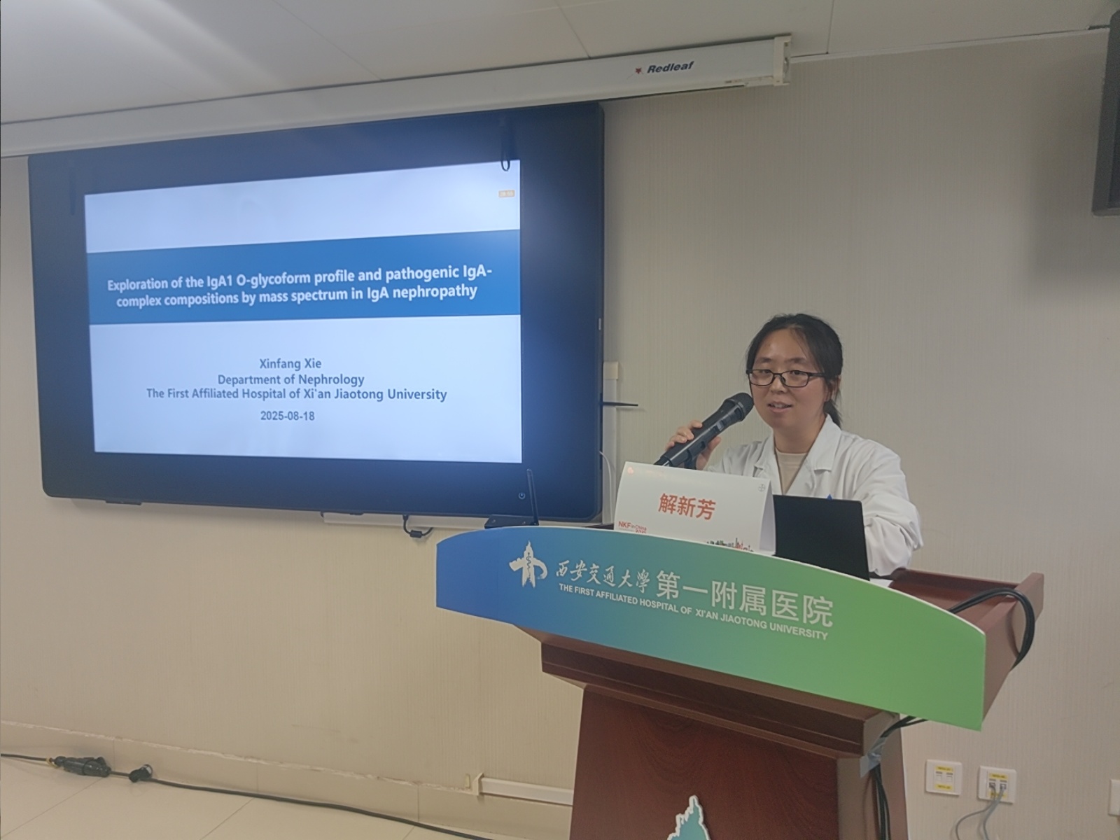 Jürgen Floege教授以“非奈利酮的应用进展:剂量、真实世界数据、安全性及多种适应症”为题,结合最新临床试验、真实数据研究,系统阐述了非奈利酮在糖尿病肾病(DKD)及其他肾病、心血管疾病治疗中的应用潜力与安全性管理策略。随后,解新芳教授分享了“质谱技术在IgA肾病Gd-IgA1及致病性IgA复合物组成分析中的应用探索”,从分子层面揭示了IgA肾病的发病机制,为早期诊断诊断与精准干预提供了新思路及研究方向。在圆桌讨论环节,与会专家就非奈利酮的临床应用前景及IgA肾病的发病机制及未来研究方向展开了热烈讨论。这两个报告不仅反映出国际研究的最新动向,也与我科目前推进的慢性肾脏病全程化管理、肾脏病理精准诊断平台建设紧密呼应,体现了科室以基础科研推动临床问题解决的战略布局。