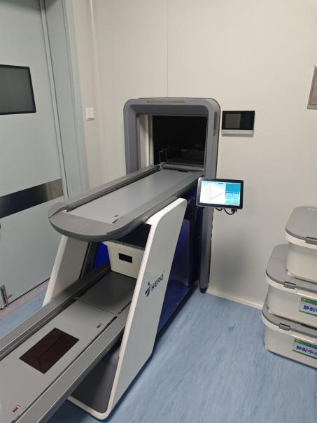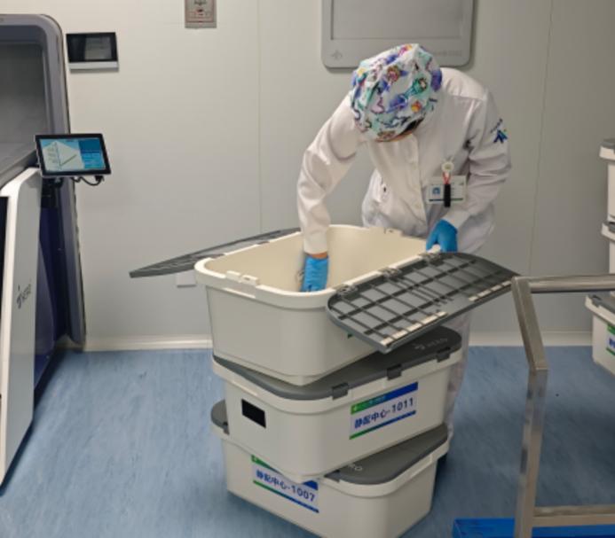 输液配送环节:外科大楼静配中心亮点突出,不仅引进贴签机、分拣机、超声清洗干燥套装等自动化设备,输液配送采用箱式物流系统替代传统人工配送模式。该系统可自动将配置好的输液精准输送到各病区,不仅节省了人力,还大大缩短了药品配送时间,大幅提升了工作效率。