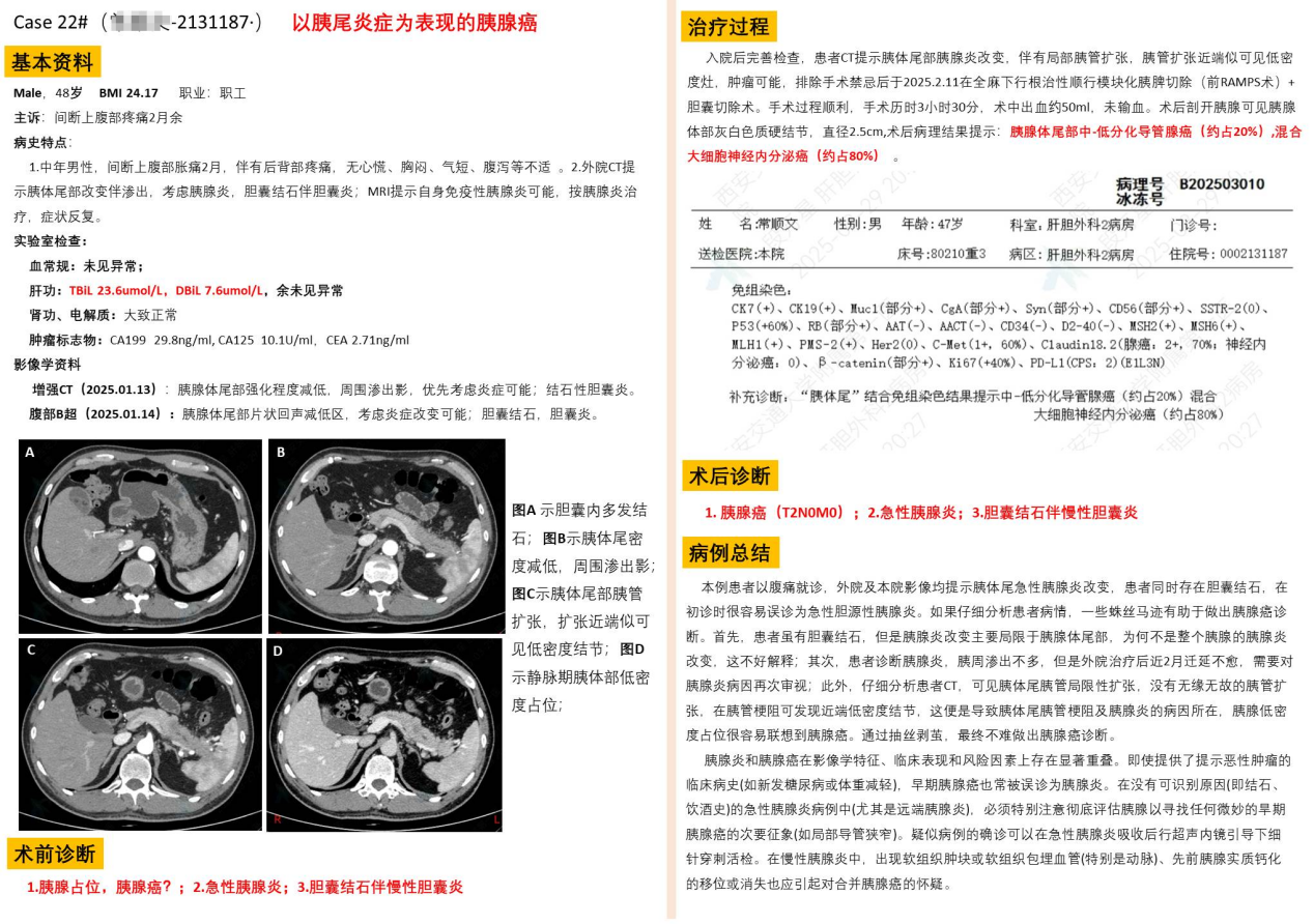 该模式以多学科协作(MDT)为基础,整合影像学、营养学、疼痛管理等多学科资源,以“去除结石,缓解疼痛,挽救胰腺功能,防止癌变”为核心治疗目标,为患者提供从药物保守治疗、体外碎石、内镜介入到外科手术治疗的阶梯化治疗方案,每一例慢性胰腺炎患者均能在这里接受到个性化的最佳治疗。
