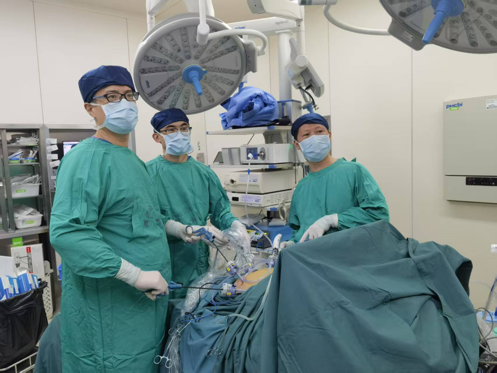 也正是凭借这种“工匠精神”,段万星在腹腔镜技术上持续深耕。胰腺手术往往较为复杂,术后并发症发生率高,因涉及较多的吻合重建,腹腔镜下完成难度更大。微创下高质量地完成手术是患者获得快速康复的关键。为突破腹腔镜下开展复杂胰腺手术的技术瓶颈,他坚持“闻鸡起舞”“每日复盘”——每天早上上班前在腹腔镜模拟器上进行练习,反复观看国内顶尖团队的手术录像,剖析操作细节,向国内顶尖专家取经,最终在腹腔镜操作中不断突破,熟练掌握了腹腔镜胰十二指肠切除术、腹腔镜胰体尾切除术等各种高难度术式,并在全国平台“胰路晓谈”上进行手术直播。