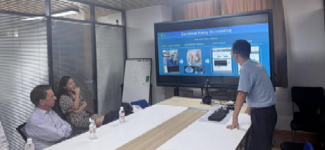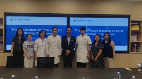 Hamm 教授一行实地考察了医学影像科的前沿设备,包括5T磁共振成像系统、低剂量 CT 诊断平台等前沿设备的临床应用场景,仔细询问了设备运行效率与技术创新成果,表示上述技术优化既保障了诊断精准度,又充分体现了以患者为中心的医疗理念,在临床转化层面达到了国际领先水平。在陕西省计算影像医学智能工程研究中心,他详细了解了中心的运行模式与研究方向,在随后的交流座谈会上,双方围绕低剂量 CT、脑发育、脑瘫经颅磁刺激、AI 辅助诊断、2025年RSNA中稿等临床及科研问题进行了深入探讨。Hamm教授分享了国际前沿的研究成果和临床经验,同时对国内团队在相关领域的研究工作提出了宝贵建议。
