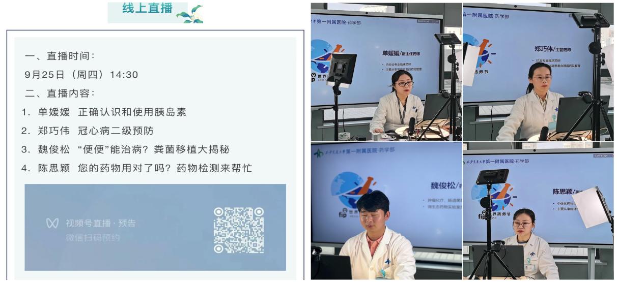 同时,精彩的线上直播也在官方视频号火热进行。药师们从自己的专业知识和临床实践出发,进行了深入浅出的科普讲座,线上听众热烈互动。