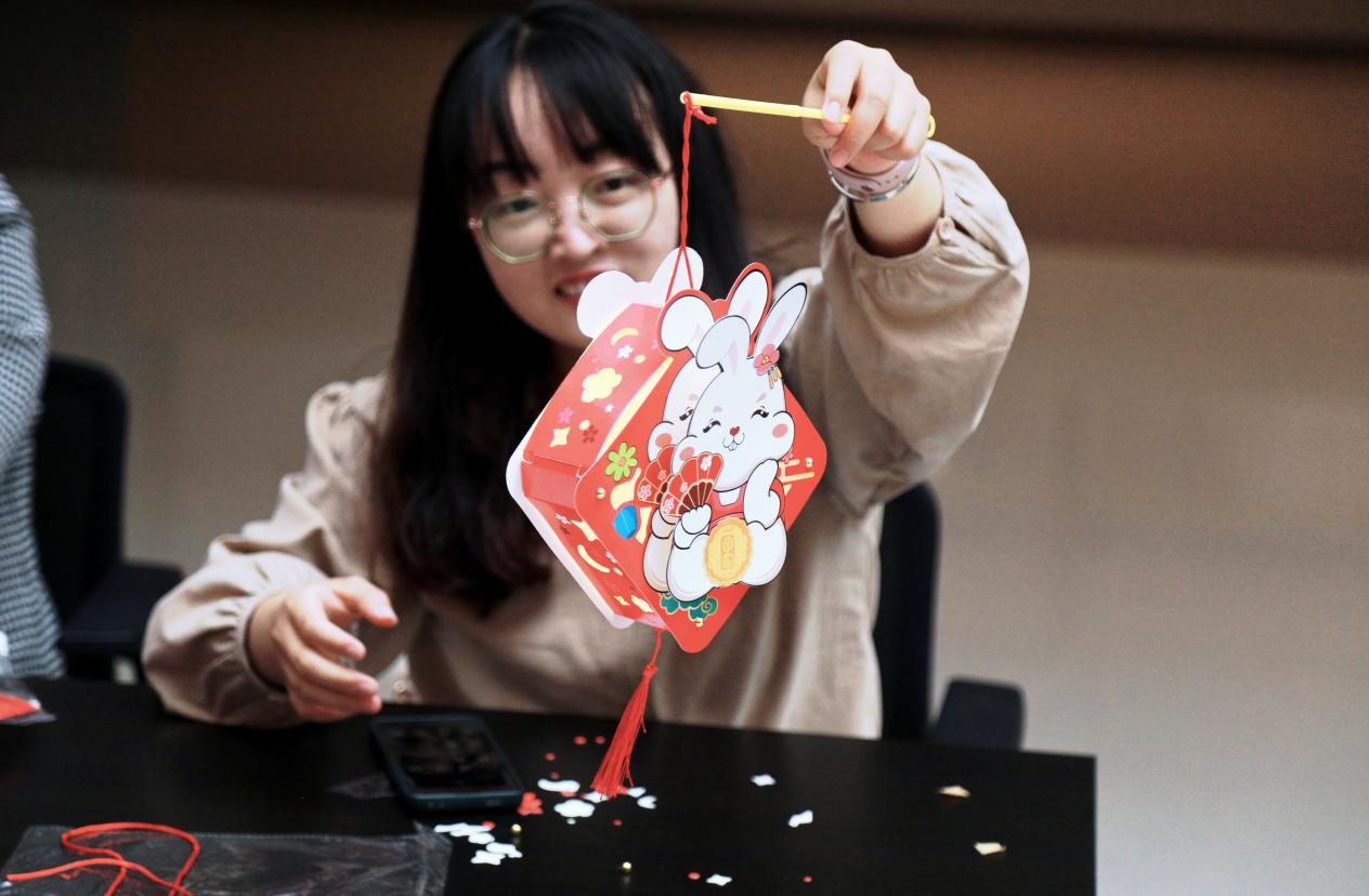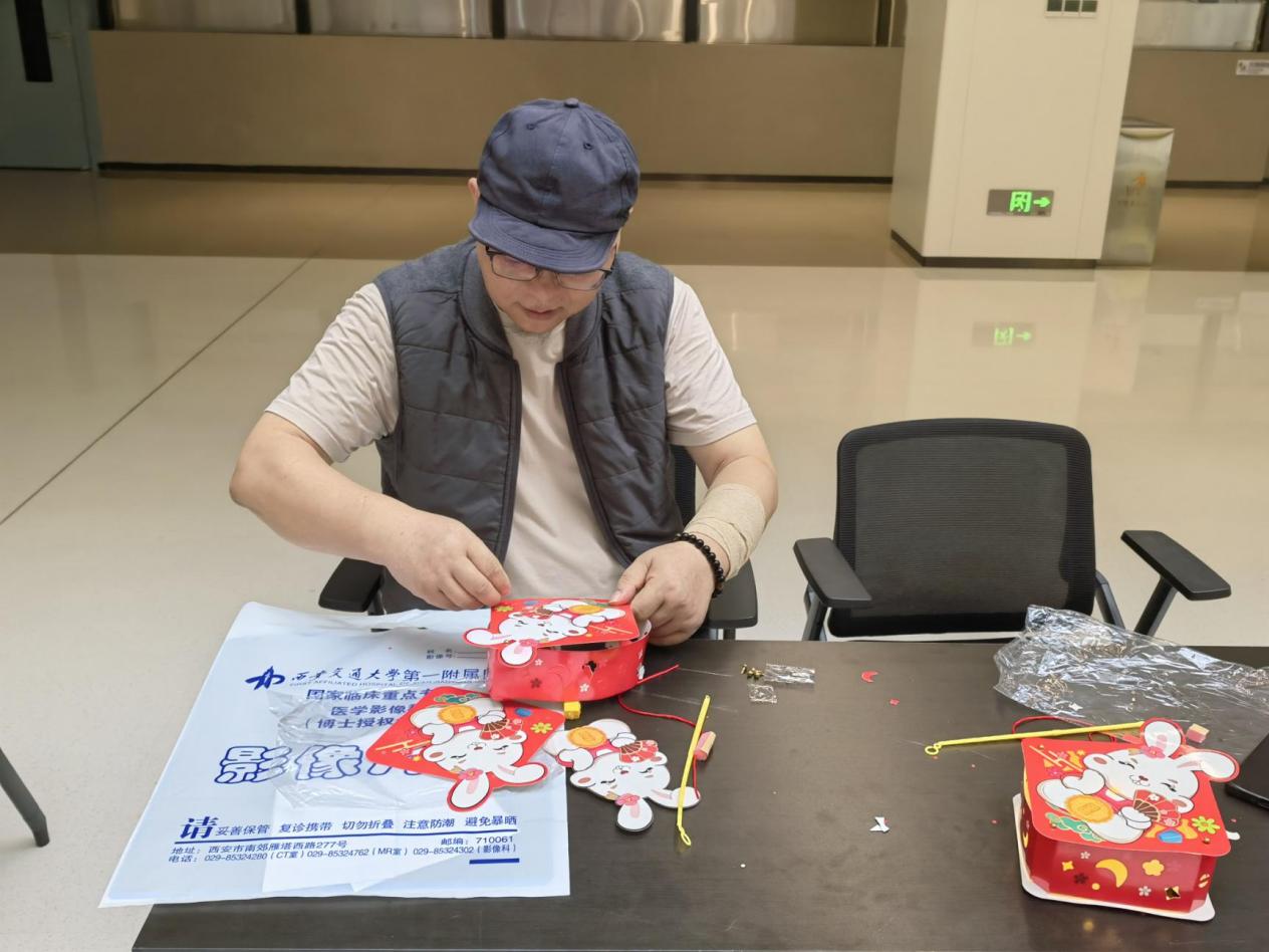 红绳绾就团圆意,花灯点亮中秋情。为让双节氛围浸润院区及周边,活动现场特别设置中秋国庆主题互动区,以传统手工艺体验与创意打卡场景交织,勾勒出一幅“月圆人团圆”的温情画卷。工作人员手把手指导参与者巧手编织中国结和亲手拼制中秋兔子灯,指尖翻飞间,中国结在红绳缠绕中渐显雏形,一盏盏憨态可掬的兔子灯在巧手下绽放光彩,在一针一线、一粘一贴中触摸传统文化的温度。