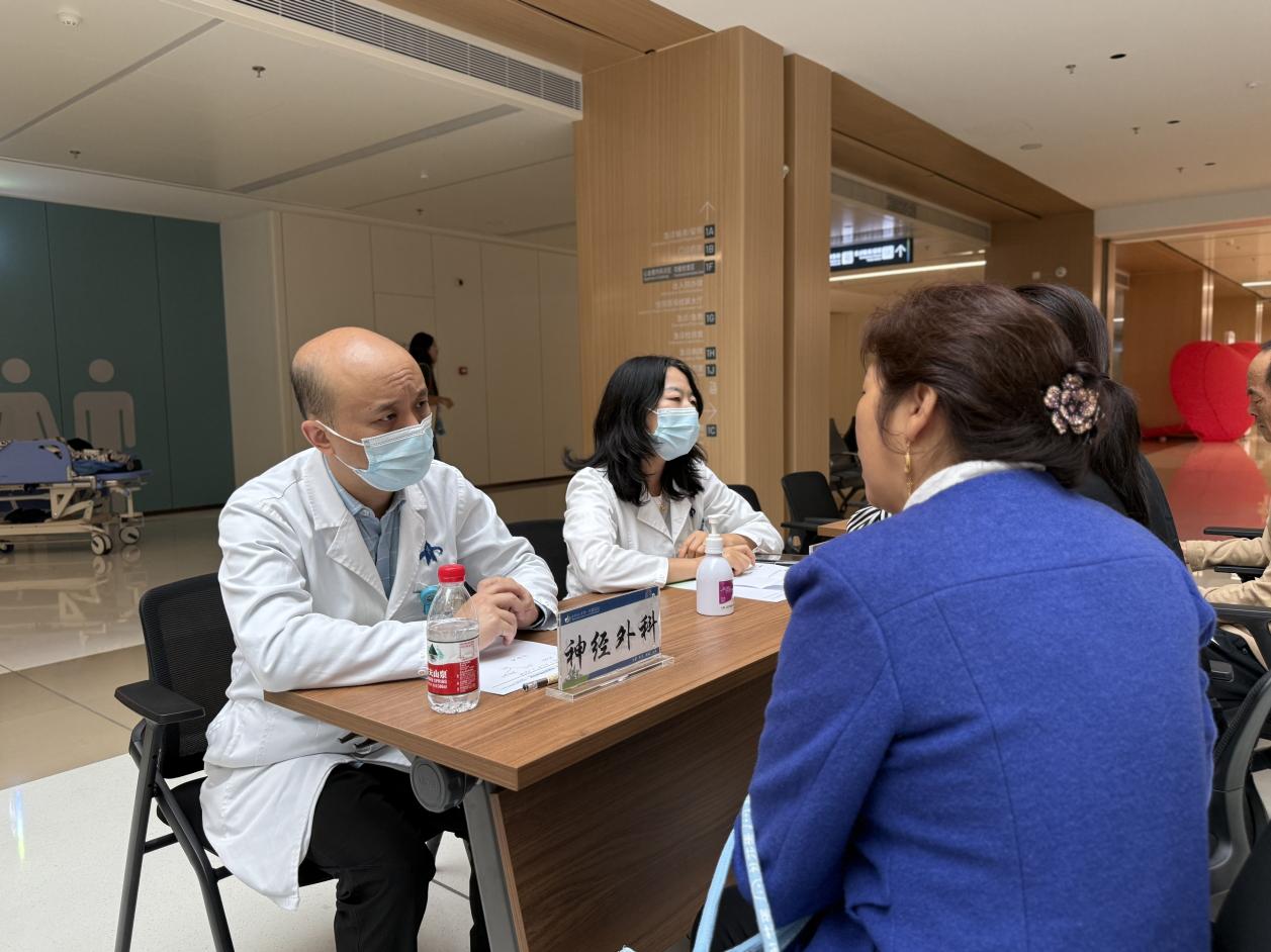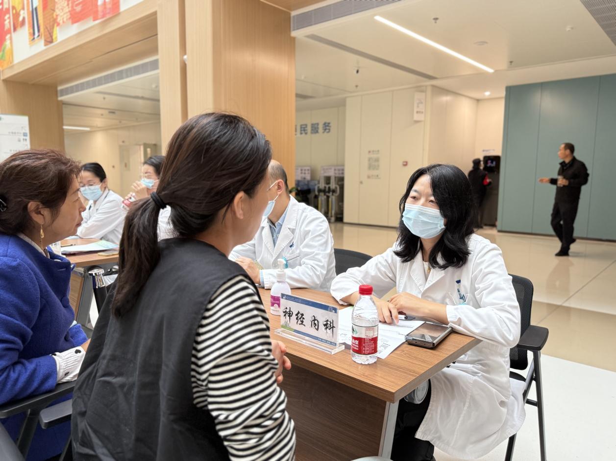 健康服务是本次活动的核心亮点。联动神经内科、神经外科、儿科、皮肤科、营养科等多科室专家打造一站式健康咨询平台。针对不同人群需求,义诊专区设置青少年健康成长咨询、换季皮肤保养、健康管理科普互动三大服务模块。神经内科和神经外科现场就专业问题答疑解惑,儿科现场解答儿童发育、行为心理等问题,为家长提供科学育儿指导;皮肤科针对秋季干燥、过敏等常见问题提供个性化护理方案,营养科开展科学减重健康宣教,门诊部工作人员现场测量血压基础指标,帮助居民建立健康生活方式。