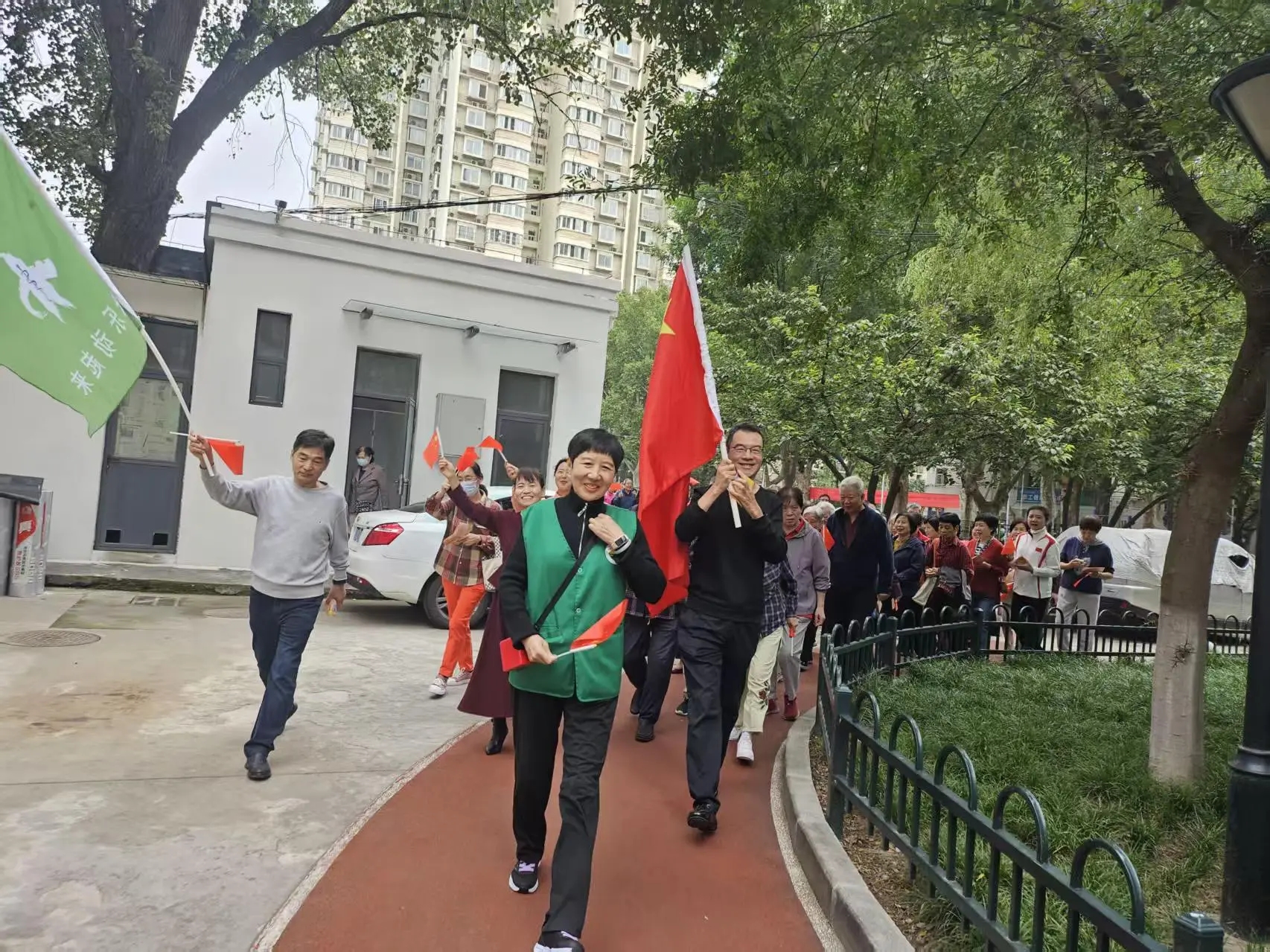 随着离退休社团李安会团长一声清脆的“活动开始”口令,健步走活动正式启动。老同志们精神矍铄,兴致盎然,迈着矫健的步伐结伴而行。他们或闲话家常,互致问候;或欣赏秋日院景,拍照留念;或步履轻盈,享受着运动的酣畅。长长的队伍形成了一道亮丽的银色风景线,充分展现了我院离退休职工乐观积极、健康活力的风采。