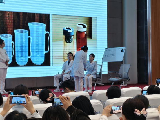 在紧随其后的提问互动环节中,现场气氛更是达到了高潮。专科护士代表、主管教学护士长代表、总带教老师、观摩学生分别就BOPPPS模型在时间紧迫的临床环境中如何高效应用、如何针对不同层次学生设计差异化提问策略、以及CBL案例选择的标准等实际问题,与参会同道进行了深入的交流。王老师结合自身带教经验,分享了如何在保证教学结构完整的同时灵活调整节奏,以及如何从临床中挖掘典型教学案例的心得。学生们也坦诚地分享了在此种教学模式下的学习体验与收获,认为BOPPPS的框架让他们思路更清晰,而CBL的引导则极大地激发了他们的求知欲和自主学习能力。现场问答不仅解答了带教老师们的具体困惑,更是一场关于教学理念与方法的智慧碰撞,使观摩的深度与广度得到了进一步拓展。