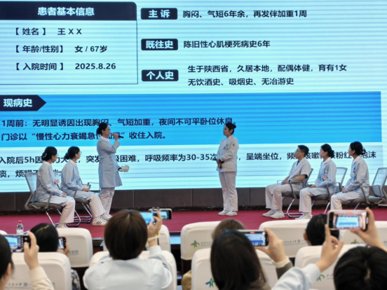 上午10时,科教楼301报告厅内座无虚席。在简洁有力的开场后,教学查房展示正式拉开帷幕。本次查房团队由西安医学院实习学生屈稼雨、胡怡馨、刘路、郭海娟、陈艺源、刘亚丽组成,在指导老师心血管内科王硕婕主管护理师的悉心指导下,他们共同呈现了一场结构严谨、互动深入的教学查房。