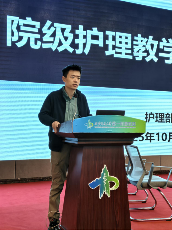 展示结束后,护理部李晨陆副主任对本次活动进行了全面而深刻的总结。他首先对查房团队的精湛展示给予了高度评价,指出本次教学查房流程规范,重点突出,充分展现了我院临床护理教学的水平与活力。并强调规范教学查房是提升临床带教质量的关键环节,各科室总带教老师应以此次展示为蓝本,深入反思本科室的带教方式,积极借鉴科学教学方法,将临床思维训练贯穿于带教全过程。