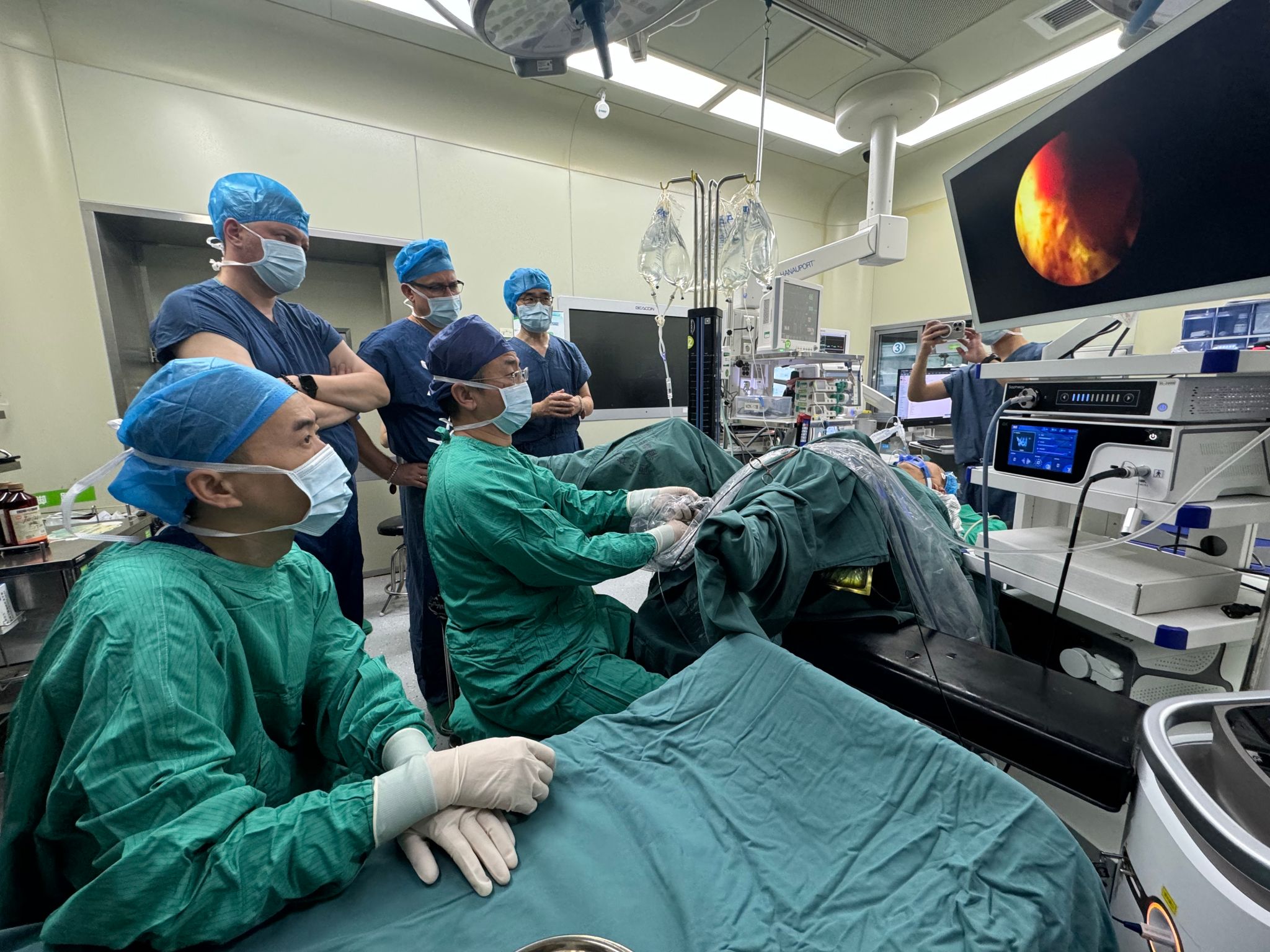 观摩过程中,中白两国专家围绕蓝激光技术在泌尿外科疾病治疗中的应用、手术操作经验、术后护理要点以及医疗技术推广等话题展开热烈研讨。交大一附院杨林教授详细介绍了蓝激光手术在临床中的应用成果、技术优势以及团队在该领域的研究进展;白俄罗斯专家则分享了本国泌尿外科医疗现状与需求,双方在交流中碰撞出诸多学术火花,达成了多项共识。