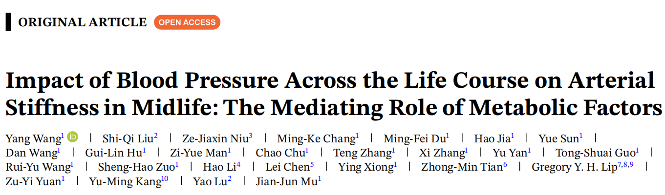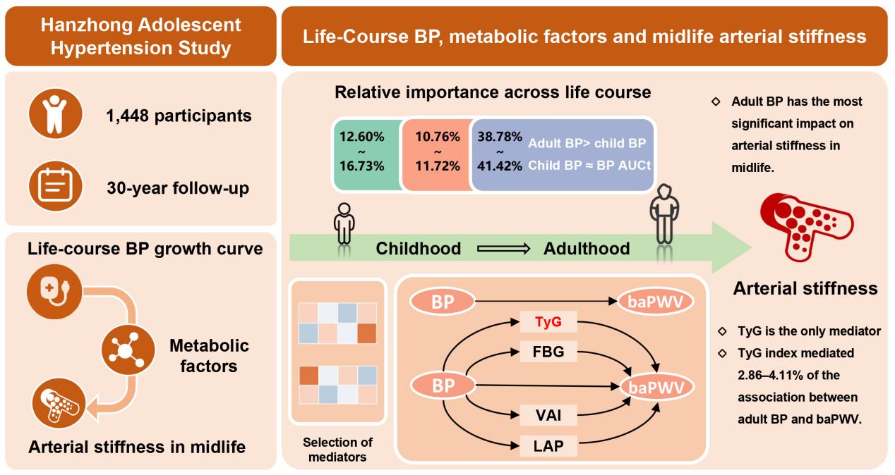 该研究明确了“生命早期—成年期—中年期”血压管理的关键价值,强调应当将血压监测与代谢健康管理纳入全生命周期策略。成果不仅丰富了动脉硬化发生发展的理论认识,也为胰岛素抵抗等代谢指标的临床干预提供了新的靶点,为防控心血管疾病提供了新的理论依据和实践启示。