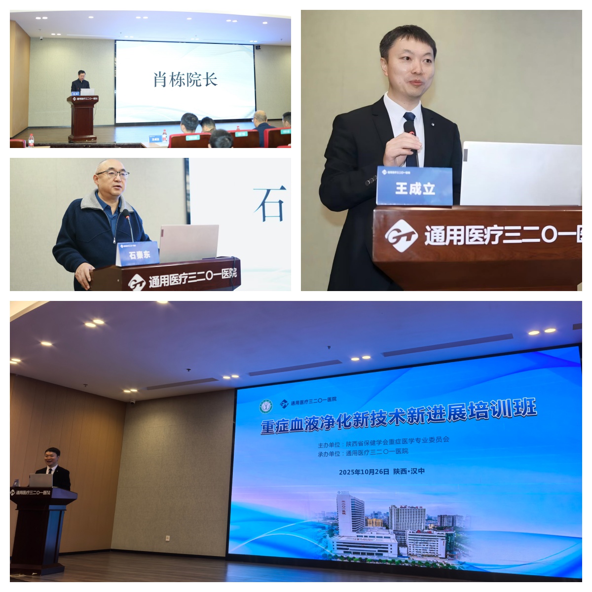 重症血液净化技术,作为现代医学的重要分支,在救治危重病患、保障患者生命安全方面发挥着至关重要的作用,随着医疗技术的不断进步,血液净化技术也在不断更新和完善。为进一步促进我省重症医学事业的发展,提升基层重症医学同道对重症血液净化治疗技术的理论水平和实践能力,陕西省重症医学专业质控中心专家团队于2025年10月26日赴汉中市开展“重症血液净化治疗技术”专项培训督导活动。西安交通大学第一附属医院重症医学科石秦东主任、汉中三二〇一医院重症医学科王成立主任、安康市中心医院重症医学科李江主任等省、市级重症质控中心专家委员,以及西安交通大学第一附属医院重症医学科刘昱副主任、王芳副护士长、马舒婷主治医师等出席会议,来自汉中市及周边基层医疗机构的100余名重症医护骨干参加培训。