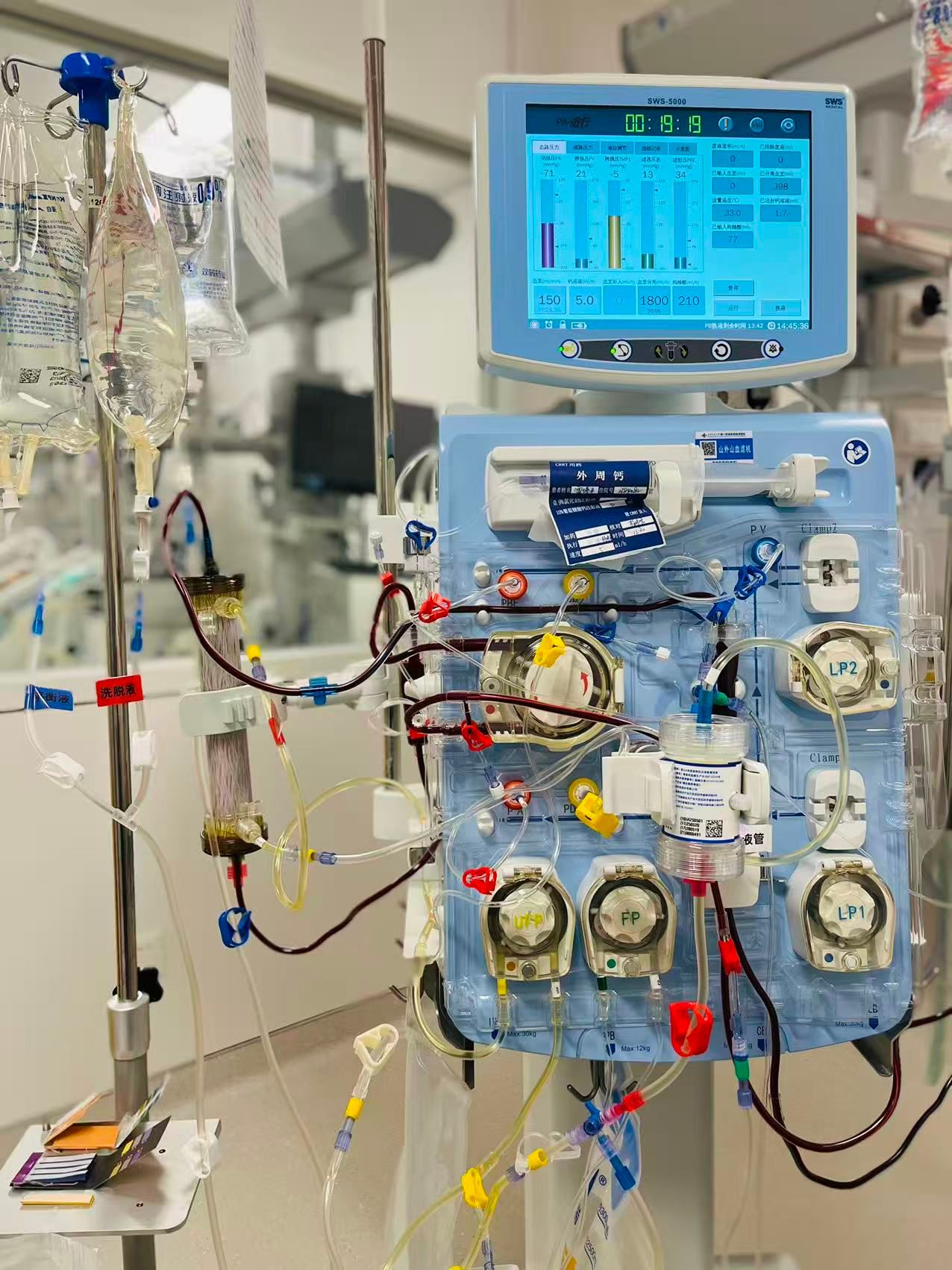 面对这一复杂严峻的临床挑战,重症医学科团队并未退缩。在石主任与张蕾老师严谨、缜密的评估与深入讨论后,团队最终提出一项创新性治疗方案:启用当前血液净化领域的先进技术——连续性血浆滤过吸附(CPFA)。该技术并非多种疗法的简单叠加,而是一套科学整合的治疗体系,通过将血浆分离、靶向吸附与血液滤过三大核心环节有机融合,构建出一套高效、精准的体外生命支持系统。
