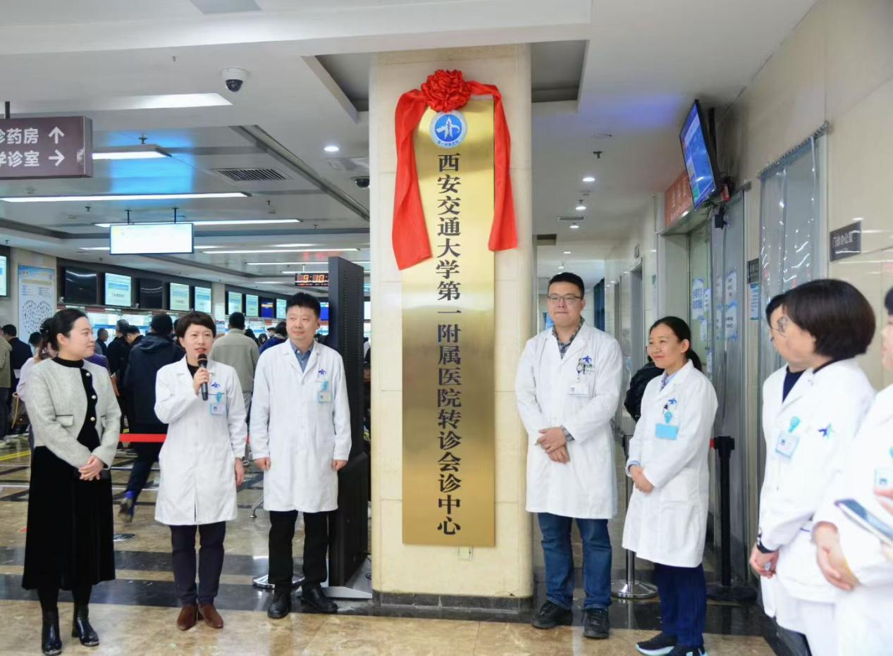 2025年10月30日上午,西安交通大学第一附属医院(以下简称“交大一附院”)转诊会诊中心揭牌仪式在总院门诊大楼一楼大厅举行。院长助理兼医务部部长王铮、全科医学科主任张玮、医务部门诊部主任刘庆、事业发展与校友工作部部长李杨、医务部医政管理办公室副主任胡婷婷、医务部门诊部副主任吴楠等院级管理团队及科室负责人共同为中心揭牌,标志着我院在落实分级诊疗政策、优化医疗资源配置方面迈出关键一步。上午九点,由医务部门诊部主任刘庆主持,宣布仪式正式开始。